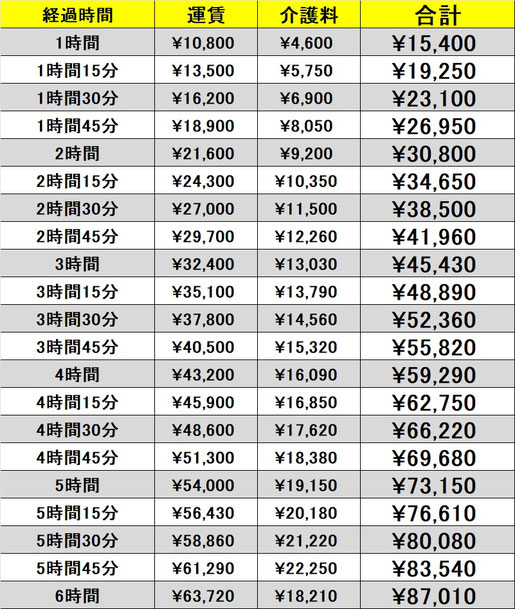 ※6時間以上が予想される場合にはご相談ください。