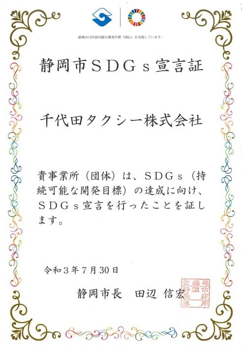千代田タクシーグループではお客様と働く社員の豊かな暮らしの創造のため持続可能な開発目標(SDGs)宣言を行い、